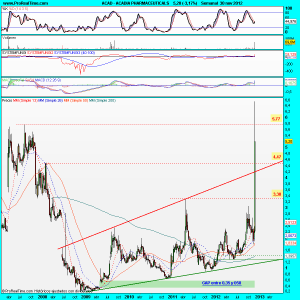 Interesante y habitual este tipo de comportamientos en las pharmas yanquis, ¡pero ojo! porque si como parece todo indicar, estamos ante un fármaco de futuro, de gran futuro porque solo pensar en la enfermedad que pretende curar y se me pone la piel de gallina, por lo que en ese futuro este precio será bueno ¡SI o SI!, pero siendo repetitivo y pesado, a su debido tiempo, porque en el camino igual la vemos todavía por debajo de los tres dólares de nuevo, ¿quién puede saber esto?.