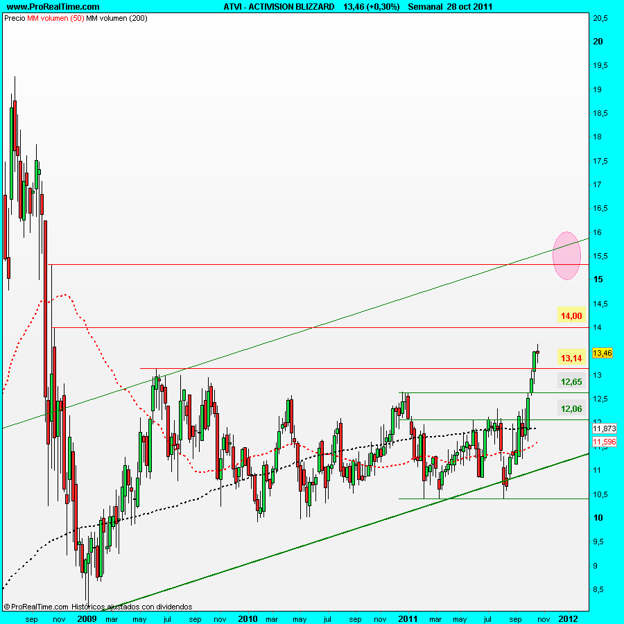 Mientras tanto, amigo Larafuzas, deja correr las ganancias y ponte niveles adecuados para una teórica salida. Los soportes que yo me pondría serían estos: 13,14 y 12,83 $.
