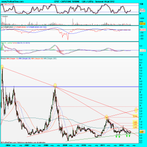 Es un precio al cual he dedicado muchas letras a lo largo de unos cuantos años y como es fácil de entender, he cogido cariño a la par de esperar del mismo grandes logros a medio largo plazo; Es un precio de momento que parece no reaccionar manteniéndose en las cercanías del dólar.