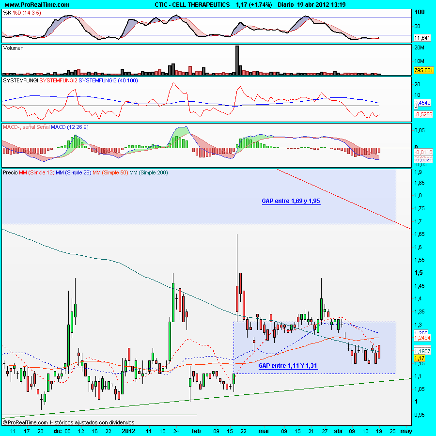 Todo esto se está produciendo dentro del gap que os marco entre 1,11 y 1,31 dólares, podría además ser indicativo sobre las intenciones del precio e ir adelantando intuiciones, sensaciones sobre sus posibilidades con respecto a su inmediato futuro.