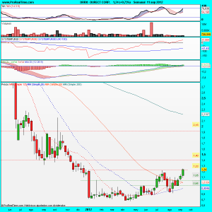 Esta bicha, suma y sigue… Y con volúmenes más que aceptables… Técnicamente, la veo con ganas de tirar para la parte alta del canal alcista, que a estas alturas, andará por la zona de los 2,15 $ aprox.