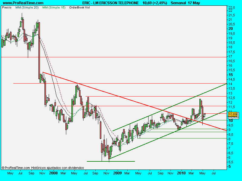Cuelgo una muy importante empresa, que tecnicamente se encuentra en un punto la mar de interesante. Conocida creo mundialmente por casi todos. Lleva ya una importante subida desde mínimos, siguiendo un bonito canal de manera escrupulosa. Amén de lo anterior, acaba de sobrepasar el precio la alcista de medio plazo y esto es fundamental para acabar de ratificarnos una buena entrada. Mueve un importante volumen y eso nos garantiza las entradas y salidas sin problemas. Marco los niveles que considero a tener en cuenta por arriba y por abajo. Creo que dentro de lo que es Nasdaq, en principio no es de la que más volatilidad tiene y por lo tanto relativamente podremos estar en ella sin excesivos sobresaltos. Suerte y cuidado con el dedo.