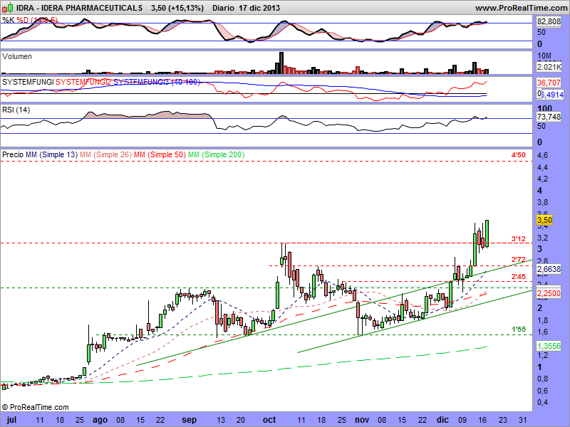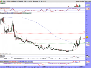 Este nuevo rally en el cual está inmerso ahora y una vez superada la primera resistencia que considero de importancia, coincidente con los anteriores máximos (3’12), puede llevar al precio a superar los 4’50 dólares por acción, ¡solo en principio!.