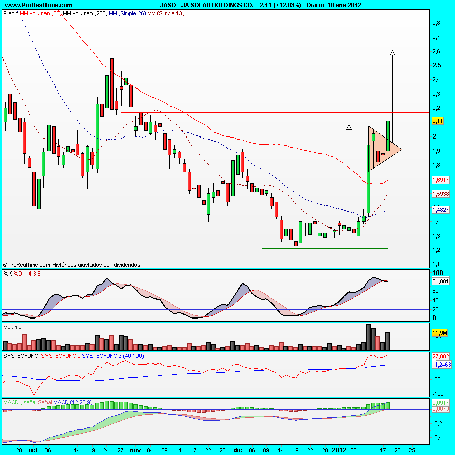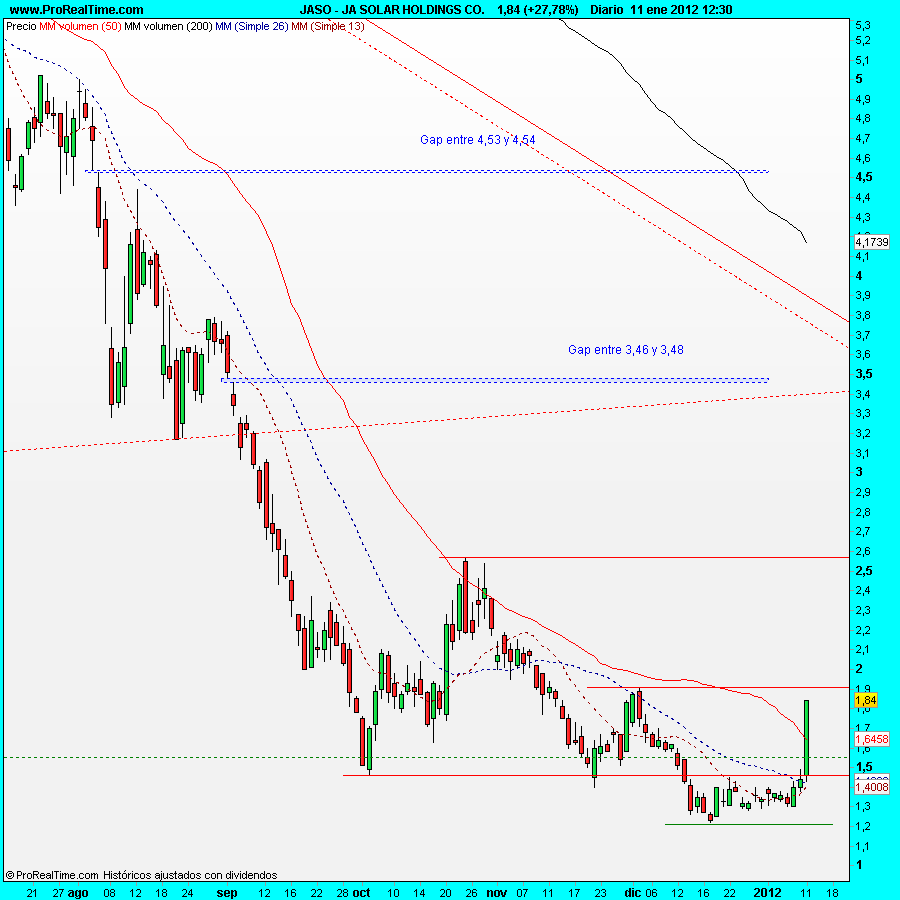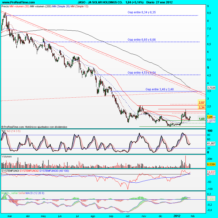 No se como acabará esto, pero no puedo evitar que me recorra un cosquilleo el estomago; mas si cabe después de que ayer deshiciera la posición de PEIX y parte de esa posición la invirtiera en JASO con 10.000 acciones mas a 1,42 dólares, promediando 1,63 $ con 25.000 acciones del ala.