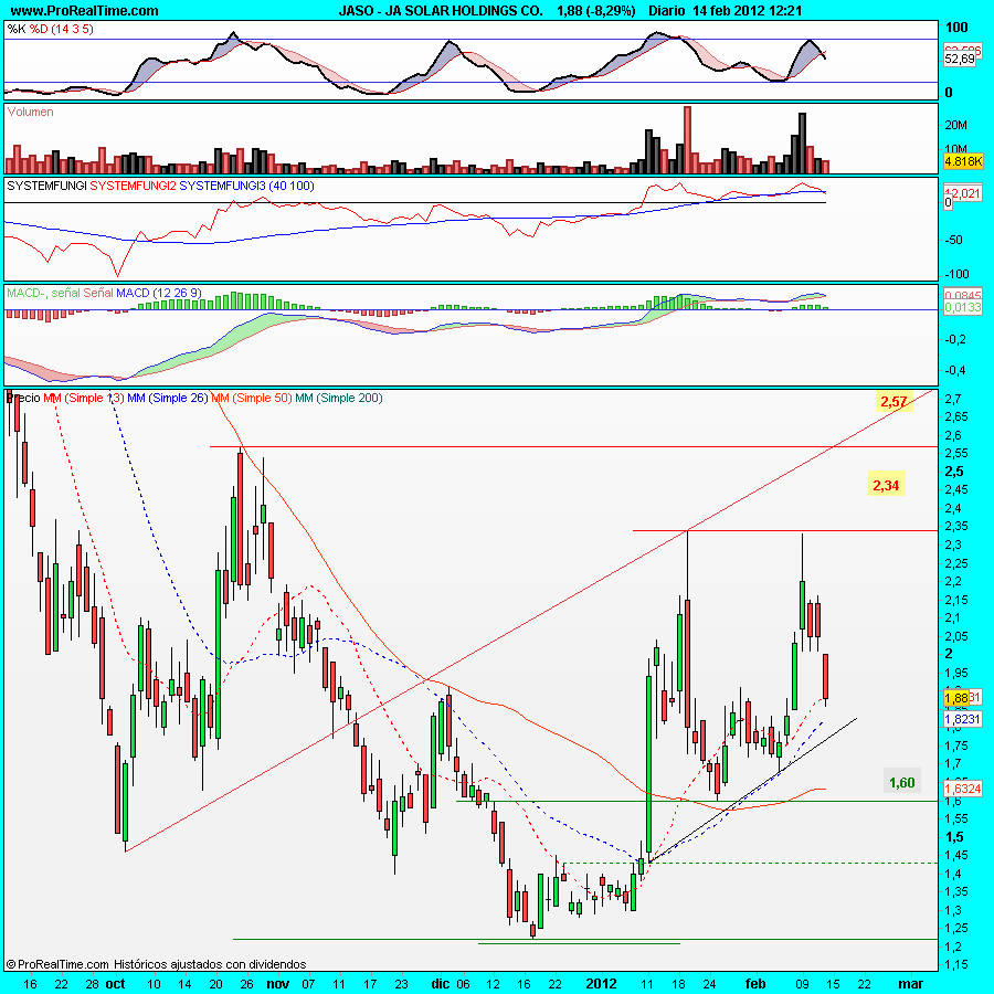 El movimiento me está gustando y aunque no podremos pensar en algo mas serio mientras el precio no supere los anteriores máximos en 2,57 $, que parecen lejanos y lo son salvo para esta pájara si realmente quiere tirar, ya que es capaz de hacerlo en un par de sesiones.