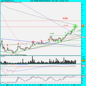 Me alegro que algunos de vosotros estéis sacando un buen rendimiento a este precio que traemos desde tan abajo. Me comentáis que ahora véis corrección en el, que os comente mi opinión y si opino lo mismo. En primer lugar tengo que deciros que yo no veo corrección por ningún lado en este momento, mientrás respete en primer término el soporte en corto situado en 4,63 dólares/acción, cosa que ha hecho hasta el momento.