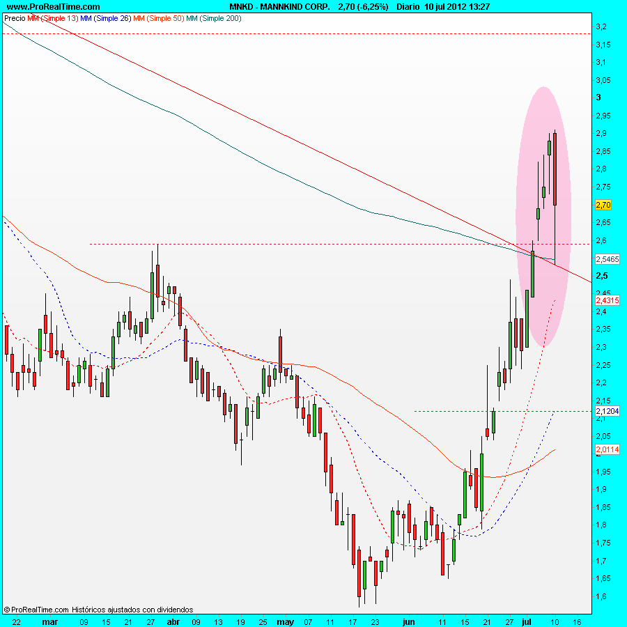 Pues nada amigos, aquí uno que sigue dentro de este precio, palmando como es lógico un importante porcentaje; Seguiré dentro hasta ver como termina esa batalla que tiene con la bajista, si le sirve de pull para continuar bajando ¡ADIOS!, si por el contrario la superase…..¡puf!.