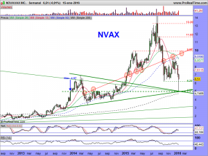 Ahora echen un ojo al gráfico semanal de NVAX y observen lo que se va dibujando y como puede quedar el asunto mañana…..¡ala, ya está!.
