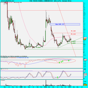 En el mismo podéis apreciar todos los niveles a tener en cuenta de cara a próximas jornadas. Para poder empezar a pensar que esto pueda cambiar  de tendencia el precio debería superar en primer término los 0,75 dólares/acción.