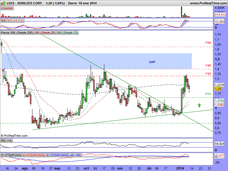 No obstante, les voy a dejar abajo, los gráficos, junto con mi opinión, de SEMILEDS CORPORATION (LEDS), en atención a Jesús. Por cierto, me gustan sus gráficos, con sus «peguillas».