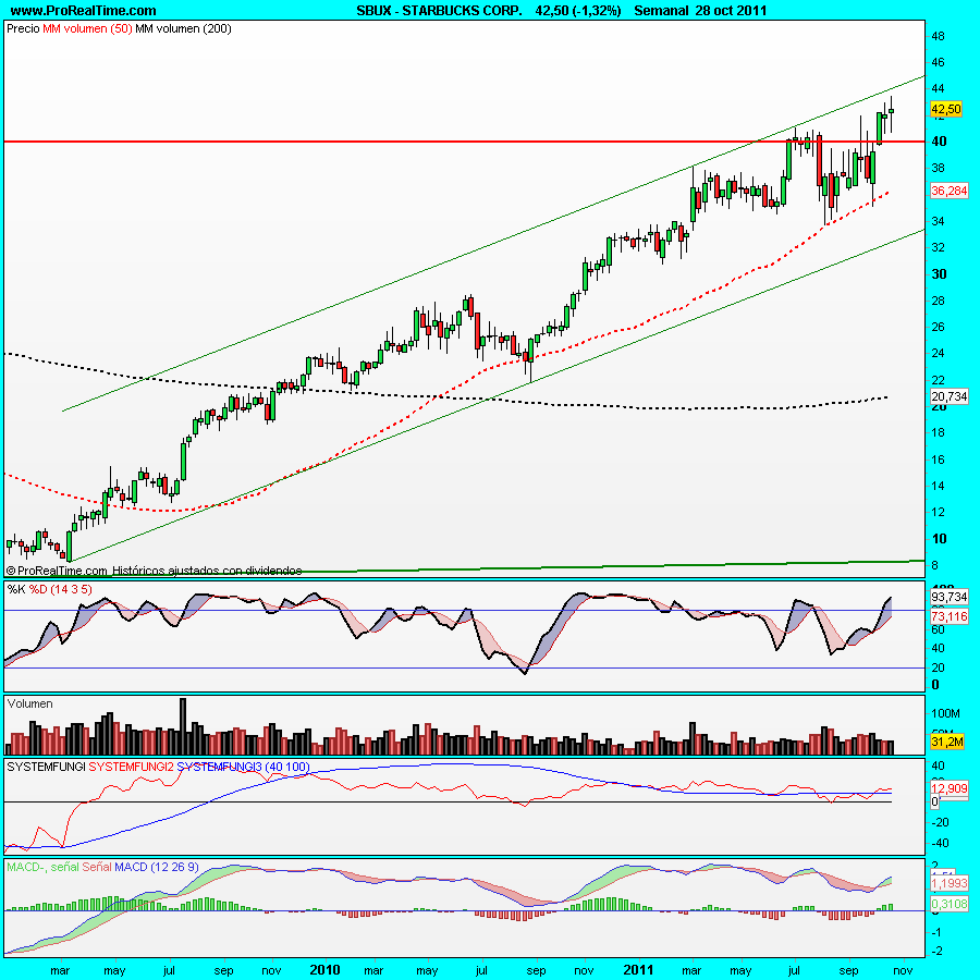 Tenemos en estos instantes ante nosotros, el mejor ratio rentabilidad riesgo que podamos imaginar, con soportes cercanos (40,00) y una sola resistencia (42,00) que en mi opinión no representará dificultad alguna. Cierre de ayer en 41,33 dólares por acción.
