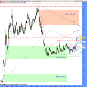 THLD. Las ultimas jornadas, pese a cerrar en verde con un mercado bien rojo, esta haciendo minimos decrecientes ya no se muy bien si como estrategia levanta stops o que. De hecho, a mi ya me han levantado los stops varias veces y eso que los dejaba por debajo de lo que creia era la linea de no retorno de los 5,54-5,55. Pero parece que no, que aqui no se respeta nada.